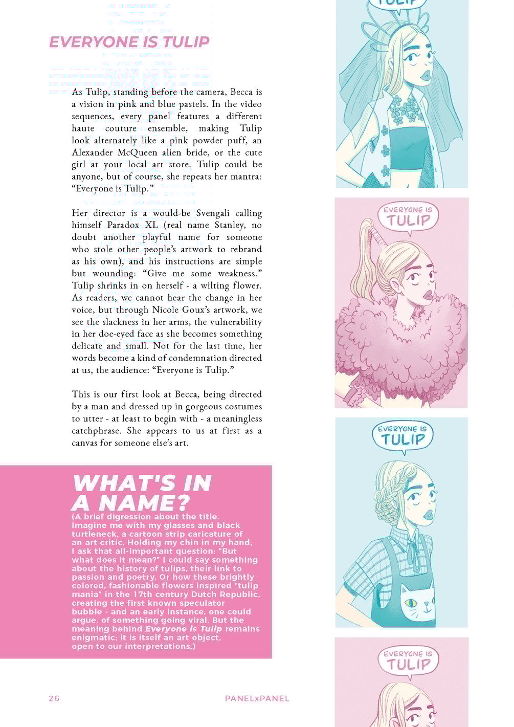 - Further essays on the role of art, commodification of bodies, how the comic uses framing to show disconnect, and more.